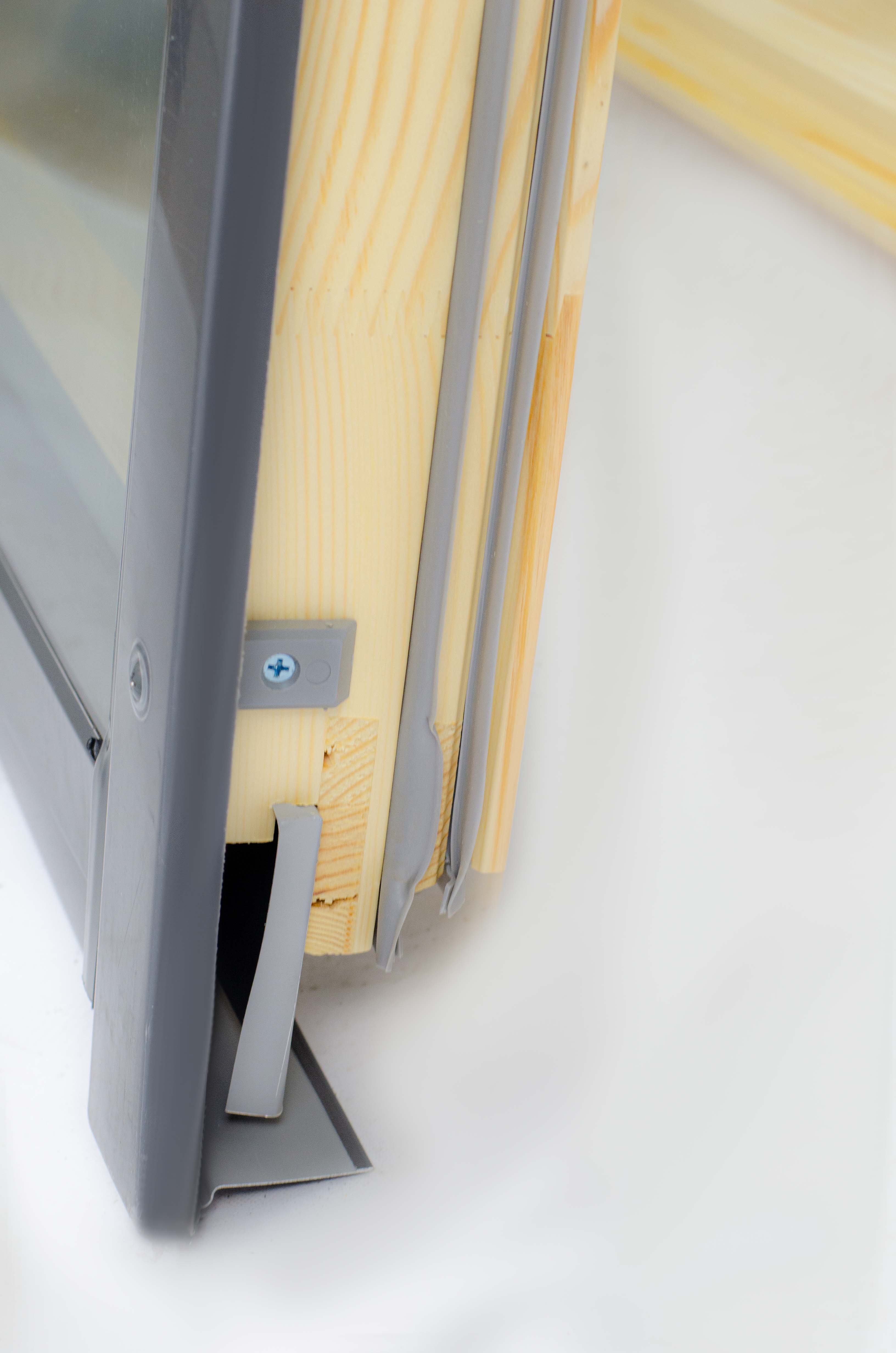 Дополнительный стальной элемент в нижней части оконной створки затрудняет взлом при помощи специальных устройств. Элемент антивандальной системы безопасности topSafe.